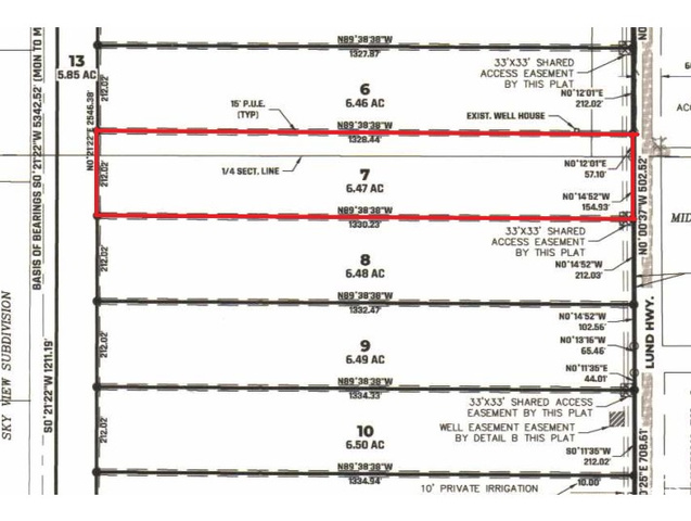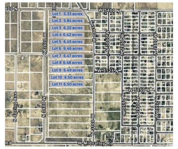 This spacious 6.47 acre lot in the Peak View Ranchettes subdivision offers an impressive amount of land, measuring 212.02 feet wide and 1328.44 feet deep. The property is easily accessible via a county-maintained paved road. You have the flexibility to bring your own builder. Utilities with Rocky Mountain power, already stubbed to the lot. Each lot comes equipped with a culinary water connection through the Water Conservancy District and includes one share in the Peak View Ranchettes Irrigation Company. Notably, the sellers have installed secondary irrigation systems, making it easy to provide water for pastures and gardens. The lot extends beyond the existing fence line, offering additional space beyond the enclosed area, enhancing the overall appeal of this remarkable property.