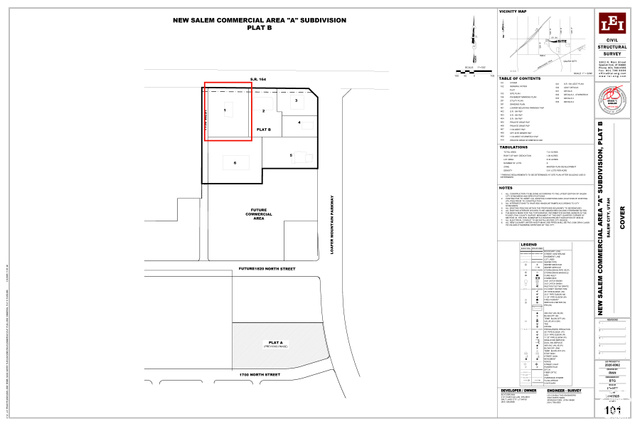 Right off the I-15 Benjamin Exit into Salem! This site has frontage on a SR-164, Loafer Mountain Parkway, and 17th North which is currently under construction. Traffic Report estimates 29,500 trips per day will be produced from the New Salem Masterplan. A great location for commercial/retail right at the entrance of Salem, Woodland Hills, and Elk Ridge. Just south of New Salem will be the brand new Arrowhead Park, which will host 5 Baseball/Softball diamonds and soccer fields for large sporting events. New Salem, the newest master planned community in Salem, UT, is strategically positioned on the corner of 8000 South (SR-164) and the newly completed Loafer Mountain Parkway. New Salem is a large mixed use masterplan with 1,900+ residential units planned. - All pads, with exception to those sold, can be sized/subdivided to fit. - Seller to deliver super pads to Buyer with perimeter roads installed and utilities stubbed to the lot. - Buyer will be responsible for all onsite development. - Zoning - New Salem master plan with development agreement allows for the C1, C2, and C3 commercial zoning to be utilized in our commercial/retail center.