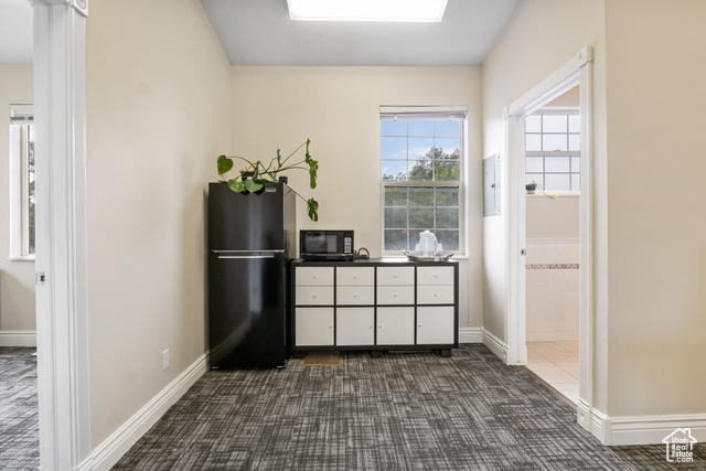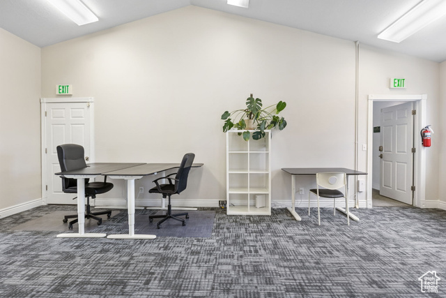 Beautiful second floor office condo has new carpet and paint! It's unique two entrances, allow for employees or clients to have a quiet retreat to the outside, if needed. There are 3 spacious private offices & a larger bullpen area that would be great for a conference table or additional work spaces. A private bathroom is located inside the unit, with a common area restroom located on the main floor. There are 4 deeded parking spaces but the complex is always under parked, leaving extra spots for your business' busy times. The common areas are attractive and well maintained.