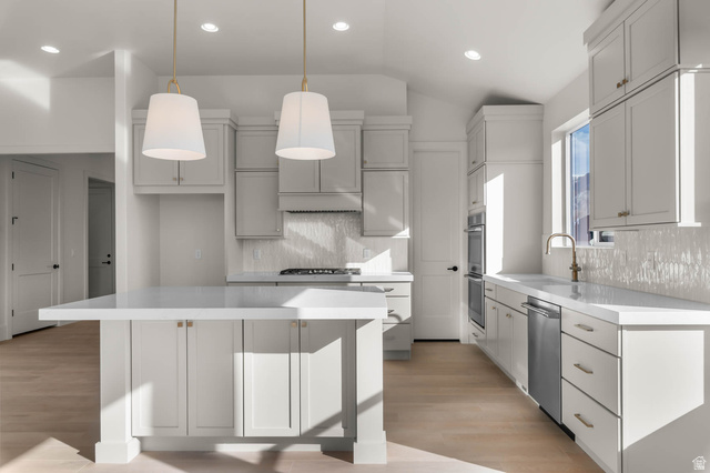 Brand new beautiful Raleigh Traditional home with a timeless design and modern upgrades throughout. This thoughtfully designed home features Bluff maple cabinets with LED lighting, pendant lighting above the kitchen island, elegant quartz countertops, a stylish tile backsplash, and Caf stainless steel gas appliances with double ovens, creating a chef's dream kitchen. The spacious interior showcases laminate hardwood, tile, and carpet flooring, a warm gas log fireplace in the great room, and elegant shiplap accents in the entry and hallway. The finished basement space adds versatility, while the expanded covered deck offers an ideal setting for entertaining. The owner's suite is a true retreat with a Tori tub, tile surrounds in the bathroom, USB outlet, ceiling fan, and black matte hardware. Additional features include a 9-foot basement foundation, 3-car garage with exit door, Christmas light and flood light packages, gas line to dryer, water softener, Roosevelt base & casing, textured walls, and 2-tone paint for a refined finish. This home combines traditional style with elevated comforts-perfect for modern living.