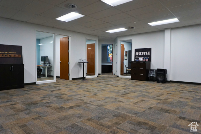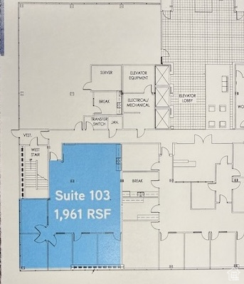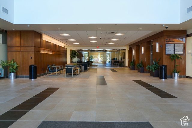 Main floor office space in a 5-story mid-rise office building. Impressive three-story atrium lobby. Unit 103 features 5 built-out offices, one kitchen/break room, and a big bull pin area. Porter service, keycard access, great security, ample parking, very well-maintained building, lots of natural light, and immediate freeway access to I-215. Several on-site restaurants and walking distance to Fashion Place Mall. This is a sub-lease space.
