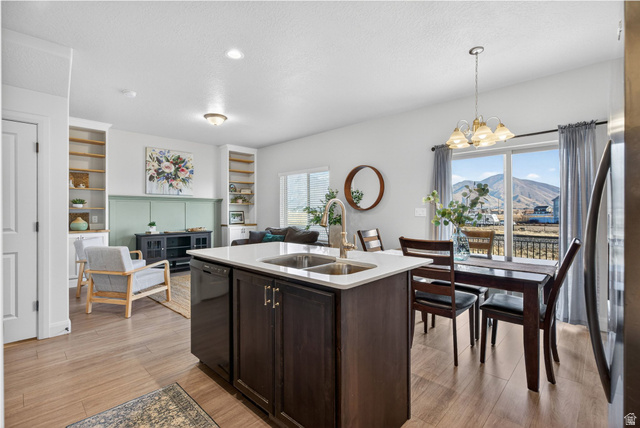 More space, more flexibility, and a fenced yard-this townhome truly stands out. This beautifully designed 3-bedroom, 3.5-bath home offers 2,433 sq ft of thoughtfully planned living space and truly lives like a single-family home. The open and airy main level features custom built-ins and a modern kitchen with a gas range and generous counter space, making it ideal for everyday living or entertaining. Upstairs, a spacious loft/flex area provides endless possibilities-perfect for a home office, additional living room, or play space. The fully finished basement adds even more versatility and includes a full bathroom with a custom tile surround and wiring for Dolby Atmos surround sound, ideal for a home theater, game room, or guest retreat. Step outside to your fully fenced yard, a rare and valuable feature in townhome living. Residents also enjoy access to desirable HOA amenities including a dog park, pickleball court, playground, and ample green space. Conveniently located just minutes from dining, shopping, entertainment, and I-15, this home offers the perfect balance of comfort, convenience, and lifestyle. With its flexible layout, thoughtful upgrades, and welcoming feel, this home is a must-see. Schedule your private showing today! Square footage figures are provided as a courtesy estimate only and were obtained from Appraisal. Buyer is advised to obtain an independent measurement.