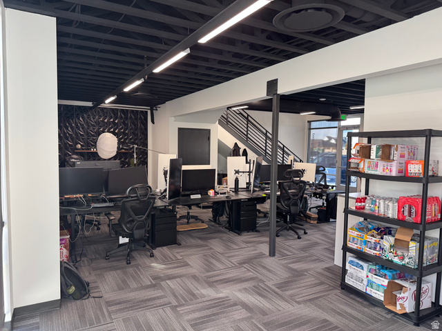 New Year. . . New Space. Excellent Open Modern Office space with open exposed ceilings, lots of glass, and fresh and new. Convenient and close access to I-15, State Street, public transportation, restaurants, and shopping. High end modern finishes. . . . New Clean and comfortable: 4 larger offices, 1 small office, excellent break room, ensuite bathroom, and lots of open space for desks, tables, cubes, and more. Call for your private Tour. Available immediately