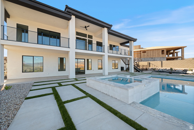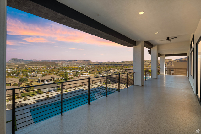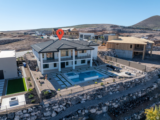 Welcome to this breathtaking new construction home with the best views in the city. The chef's kitchen features top of the line Frigidaire Professional appliances, including a side by side refrigerator, dual dishwashers, and a butler's pantry. The primary suite opens directly to a private covered deck, where you can enjoy sweeping views of Pine Valley Mountain and Zion National Park. The luxurious primary bathroom boasts a unique tub and shower room with dual shower heads. Additional features include laundry facilities on each floor, dual heating and cooling systems with smart thermostats, and a separate casita with its own entrance, perfect for guests or extended family. Step outside to your own personal paradise, where the stunning backyard offers an in ground pool with a sun shelf, a spa with waterfall features, and a fire pit area, all framed by awe inspiring views of the surrounding mountains and national park. Enjoy outdoor living on the expansive 556 sqft deck off the main floor and the 608 sqft patio off the basement. The attached two car garage, along with a dedicated toy garage, provides ample space for your off road vehicles or boat. With unparalleled vistas, luxurious finishes, and a design that seamlessly blends comfort and nature, this home is truly a one of a kind retreat.