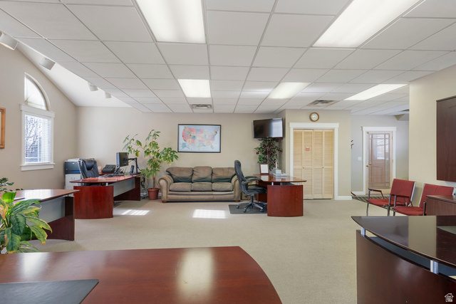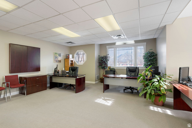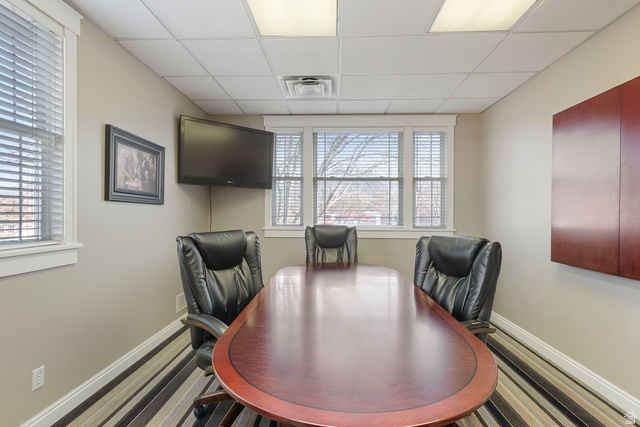 Exquisite, professionally designed office building featuring three executive office suites, each with its own private conference area. Offering two convenient entrances and abundant parking, this property is perfectly situated in a prime, high-visibility location. The beautifully appointed interior provides an ideal setting for high-power executives, while the charming exterior delivers exceptional curb appeal. A rare opportunity to elevate your business in a truly distinguished workspace.