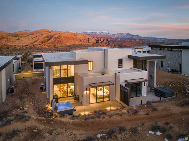 LIONSBACK RESORT An unparalleled experience of discovery and respite. Designed to blend in with its natural landscape, Lionsback Resort offers an unrivaled launchpad for all the adventure, exploration and relaxation Moab has to offer, all while treading lightly on the land. While its 175 acres of land with 70% open space offer a sense of seclusion, Lionsback Resort is a stone's throw away from the City of Moab, so you're never far from community and culture. This timeless 2-story Strata Casita meets sophisticated design, immersing you in the surrounding desert landscape with both indoor and outdoor living. An abundance of large windows with vaulted ceilings gives you the unobstructed views of sunlight reflecting off red rock fins and the sunset alpenglow on the La Sal Mountains. Earthy desert hues from the Fireclay tile backsplash and Italian cabinets are beautifully offset by clean, modern lines from the timeless quartz countertops. Thoughtful design represents the surrounding terrain, all while incorporating high-end finishes, from Wolf and Subzero appliances to a 5-piece spa-like bathroom with wet room, soaking tub and Waterworks plumbing fixtures, to the built-in speaker system with Sonos amp. Offering 2 en suite bathrooms, this luxury home has short-term rental zoning and comes fully furnished and accessorized, including linens, decor, dishware, kitchen wares, televisions, and hot tub. When the wild terrain is calling, Lionsback Resort offers on-site access to the Mill Creek Trail and Hells Revenge 4x4 trail, standing at the gateway of the world-renowned Sand Flats Recreation Area, home of the famous Slickrock Trail, two National Parks, Arches and Canyonlands, and the Colorado River for limitless discovery.