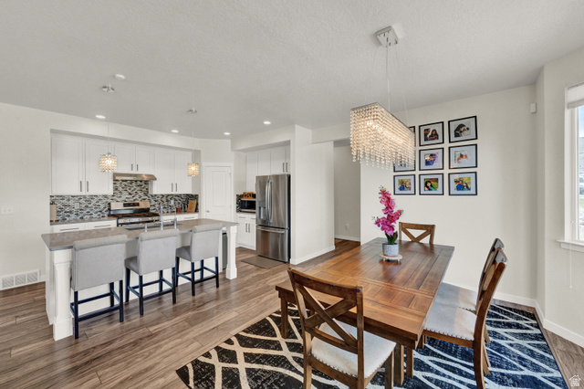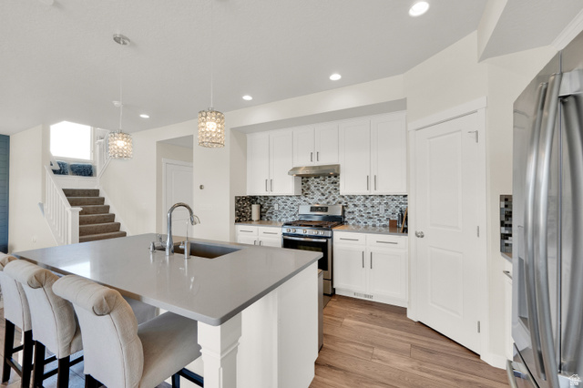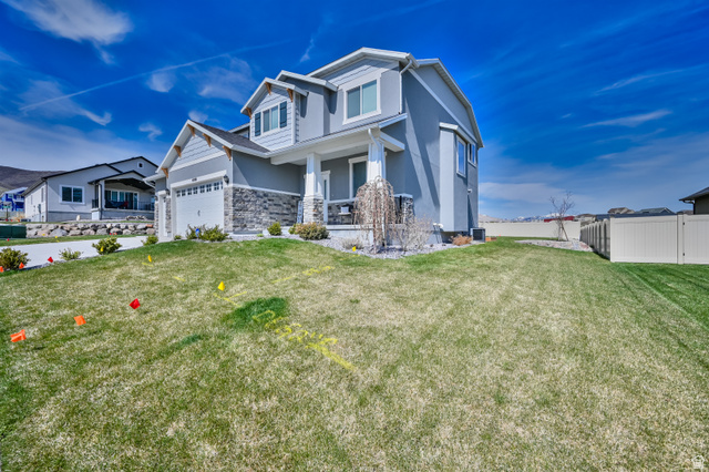 This 2-story single family home is located in Herriman. Spacious floor plan includes a large living room, dining area, and kitchen complete with stainless steel appliances, quartz countertops, tile backsplash, large center-island, plenty of cabinet space, and massive pantry. Convenient and spacious mudroom providing space to keep your living space organized and clutter free. Living room features large windows that fill the space with natural light, creating a warm and welcoming ambiance. Formal living room on main level can be used as an office. Upstairs, you will find the primary suite boasting vaulted ceilings, large windows, ensuite bathroom with separate tub and shower, two sink vanity, and walk in closet. Three additional bedrooms, a full bathroom, and laundry room upstairs. Highlighted features include: Cellular Blinds, ActivTek UV light HVAC Air Purifier which helps to eliminate bacteria and viruses from the air, Aprilaire whole house automatic indoor humidity control, salt efficient 64000 grain water softener, efficient Kinetico reverse osmosis system in kitchen sink and refrigerator, Google smart thermostat, Google Centurylink Fiber connection, energy efficient cellular blinds throughout the house with blackout cellular blinds in bedrooms, high efficiency AC, 3 car garage, myQ smart garage door controller and 20Amp dedicated GFCI in garage. Unfinished basement that can be used for extra storage with active Radon mitigation system inbuilt. Beautiful fully fenced yard with plenty of space and large pergola for outdoor activities. Pets are accepted on a case by case basis. If accepted, $75 per pet/monthly plus a $750 per pet deposit that is fully refundable. Check out the 3D tour! For additional requirements, please visit: https://actionteamutah.com/requirements-for-renters