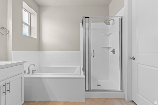 Step into timeless home with this beautifully crafted 1700 Farmhouse! Thoughtful upgrades include spacious box windows in both the kitchen nook and owner's bedroom, can lighting, and Christmas light outlets. Designed for efficiency and comfort, this home offers a tankless water heater, energy-efficient options, and two-tone paint throughout. The kitchen highlights white laminate cabinets, quartz countertops, and stainless steel gas appliances. The open floor plan is enhanced by warm laminate hardwood, vinyl tile, and carpet flooring, creating a welcoming and versatile living space. The metal stair railing, Craftsman-style base and casing, and grand owner's bathroom with cultured marble surrounds and satin & brushed nickel hardware complete the look of quality and style. All located in a great Eagle Mountain master planned community! Come check it out today!