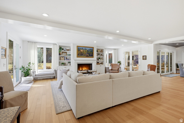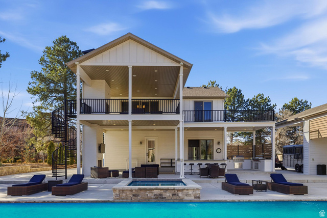 This masterfully remodeled modern farmhouse offers the pinnacle of luxury living on a secluded 2.50-acre lot. Blending sophisticated design with functional homestead charm, the estate features a private drive and unmatched views of the Wasatch mountains. Every inch of this 12,086-square-foot masterpiece has been curated for the discerning buyer, beginning with a main residence where grandeur meets comfort. The house is thoughtfully designed with six spacious bedrooms and six elegant bathrooms, ensuring every occupant has a private retreat. At the heart of the home lies a chef's dream kitchen, equipped with top-of-the-line appliances, two massive islands, and a large butler's pantry. The adjacent family room is flooded with natural light through floor-to-ceiling windows and features a semi-formal dining area alongside one of the home's many elegant fireplaces. The main level also includes essential spaces such as a formal dining room for hosting, a private home office, a dedicated craft room or second office, and a massive mudroom with custom lockers. Upstairs, the primary suite serves as a true sanctuary with a spa-like bathroom, expansive walk-in closets, and a private covered deck complete with its own fireplace and TV. This upper level also serves as an entertainment hub, featuring large secondary bedrooms with private decks and a dedicated theater room equipped with a full kitchen. The backyard is an unparalleled resort-style oasis designed for entertaining. The aquatic features include an in-ground pool with a slide and a relaxing hot tub, complemented by dedicated changing rooms, poolside bathrooms, and a full kitchen. For outdoor dining, the grounds feature multiple built-in BBQ stations and a private pergola, all surrounded by mature trees for total seclusion and stunning mountain views. The estate further includes a detached ADU that functions as a "home within a home," perfect for guests or a high-end executive office. It features a bedroom/office, bathroom, kitchenette, and a covered deck overlooking the pool. Hobbyists will appreciate the four-car attached garage and a detached two-car garage with extra depth and built-in cabinets. Hidden beneath the suspended garage is a full-scale gym or dance studio with its own laundry and bathroom. For those with an adventurous spirit, the property provides massive, covered RV parking and multiple storage rooms. Perfectly positioned for the Utah lifestyle, this legacy estate is centrally located near top-tier schools and shopping yet remains only minutes away from the world-class skiing and hiking of Big and Little Cottonwood Canyons.