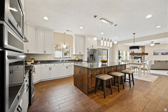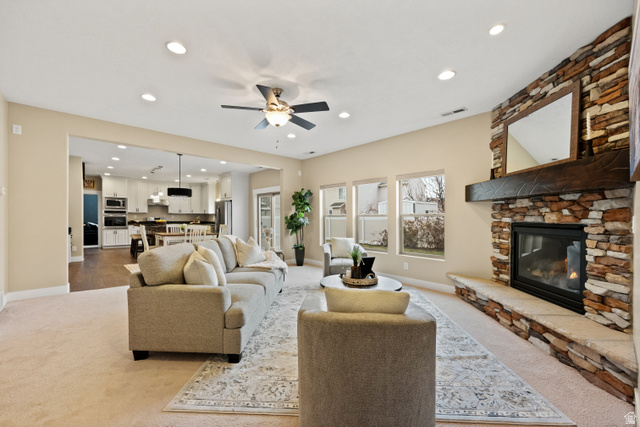 *$10K IN SELLER CONCESSIONS OFFERED TO HELP WITH A LOWER RATE AND/OR CLOSING COSTS* This exceptional Springville estate blends luxury, space, and unforgettable mountain views into one extraordinary home. From the moment you enter the grand foyer, you'll feel the openness and thoughtful design of this 4,394 sq ft residence. The chef's kitchen features a large walk-in pantry and flows seamlessly into the expansive family room, where a striking floor-to-ceiling stone fireplace creates a warm and impressive focal point-perfect for entertaining. With five bedrooms and 4.5 bathrooms, this home offers privacy and comfort at every turn. Three bedrooms feature private en-suite baths, while two additional bedrooms share a Jack-and-Jill bathroom. The primary suite is a true retreat, complete with a cozy sitting area divided by a double sided gas fireplace and a spa-like bathroom boasting dual sinks, a jetted soaking tub, an oversized multi-head walk-in shower, and a spacious custom walk-in closet. A main-floor theater adds a rare and luxurious touch, while the oversized 3-car garage and .25-acre corner lot provides space and functionality. All of this, set against jaw-dropping mountain views in the heart of Springville-this is luxury Utah living at its finest.
