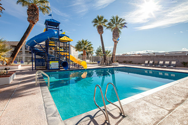 Turnkey vacation rental with proven performance and full resort amenities! This rare 3-bedroom, 3-bath condo offers elevator access, generous living space, and a strong rental history. Thoughtfully updated and move-in ready, it's ideal for investors or second-home buyers looking for immediate enjoyment and income. Enjoy a true resort lifestyle with multiple indoor and outdoor pools, a waterfall pool, hot tub, waterslide, splash pad, pickleball and tennis courts, fitness center, playground, and palm-tree-lined grounds. The unit includes a one-car garage plus ample additional parking and is conveniently located near The Gap and Dirt Mountain biking trails just west of the complex.