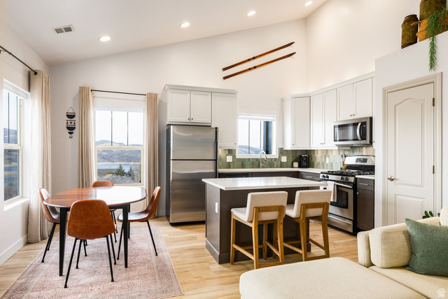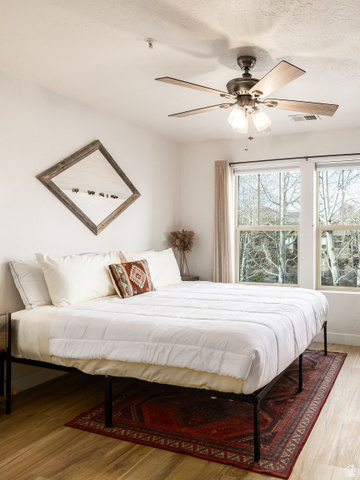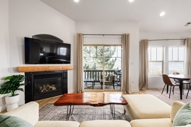 Beautifully renovated and turnkey, this 2-bedroom, 2-bath condo captures sweeping views of the Jordanelle Reservoir from nearly every room and sits just five minutes from Deer Valley's East Village. Leave the car behind as a complimentary shuttle service picks you up right at your door and delivers you directly to the Village. After a day on the slopes, unwind by the gas fireplace, grill with a view, or gather for game night at the dining table. One of only two Fox Bay units with vaulted ceilings, the home lives larger than expected and is filled with natural light. Recent upgrades include new flooring, kitchen cabinetry, kitchen and bath countertops, furnishings, light fixtures, and fresh paint throughout. In warmer months, relax on the spacious deck while taking in reservoir and mountain views. Additional features include in-unit washer and dryer, two garage parking spaces, and access to community amenities including a pool, hot tub, pickleball courts, and fitness center. Ideally located just 10 minutes from Park City's Historic Main Street and the Heber Valley, with hiking and biking trails right outside your door. Approved for nightly rentals with a 7-night minimum, this unit has a solid rental track record.