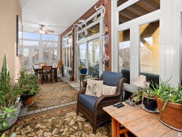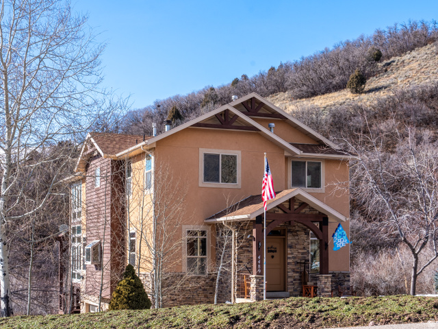 Stunning custom-built Peterson Builders home on a private 1.34-acre wooded lot along seasonal Wolf Creek, just minutes from Powder Mountain. This furnished 3-bedroom, 4 full-bath residence offers 3,648 total square feet, which includes two enclosed four-season porches, each approximately 300 SF, complete with heat and A/C for year-round enjoyment. Quality craftsmanship is evident throughout with blown insulation, custom hickory cabinetry in the kitchen, laundry room, and all four baths, quartz stone countertops, and beautiful log wood accents. The home features an inviting covered entry, circular drive, and a spacious 3-car garage the heated and air-conditioned single-car garage bay. with under-stair storage and pull-down attic access. Interior highlights include an extra-wide half-log stairway, large closets, private office, and a spacious laundry room with utility sink, built-in ironing board, and sewing center. The vaulted master suite showcases custom wooden beams, a gas fireplace with half-log mantel, and a luxurious bath featuring a body-jet shower. Additional half-log mantel accents are found in the living room. Designed for comfort and efficiency with two hot water heaters, a whole-house recirculating hot water system, two air handlers, and two A/C units. The Heat & Glo wood-burning fireplace in the living room is capable of heating the entire home. Outdoor amenities include two electrified sheds: a 14' x 16' shed and a 14' x 28' shed with two lofts and a workbench-ideal for storage, hobbies, or a workshop. A rare opportunity to own a beautifully crafted, move-in-ready custom home offering privacy, functionality, and timeless rustic elegance near world-class recreation. All property information, boundaries and documents to be verified by buyer.