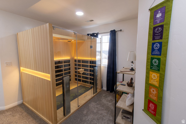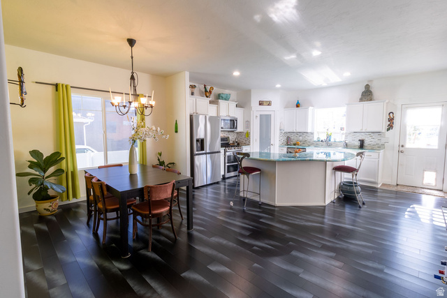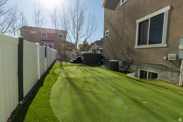 Stunning Home in Quiet Golf & Lake Community. This beautiful home features a spacious open floor plan highlighted by striking indigo blue bamboo floors and dramatic high ceilings. The large kitchen and dining area are ideal for both everyday living and entertaining, complete with a double-oven range and unique epoxy countertops that add a modern, artistic touch. The home offers 4 bedrooms and 2.5 updated bathrooms, including a generous primary suite with a separate soaking tub and walk-in shower. Both full bathrooms feature large garden tubs for ultimate relaxation. Designed for wellness and outdoor enjoyment, the property includes a full-spectrum infrared yoga sauna, swim spa, two decks, a patio, and a putting green. Garden enthusiasts will love the thoughtfully maintained flower garden and vegetable garden with raised beds. Located in a quiet golf and lake neighborhood, just 30 minutes from downtown Salt Lake City, this home offers the perfect balance of tranquility and accessibility. Enjoy peaceful evenings and clear, star-filled skies every night. New paint and carpet in upstairs. Square footage figures are provided as a courtesy estimate only and were obtained from an appraisal.