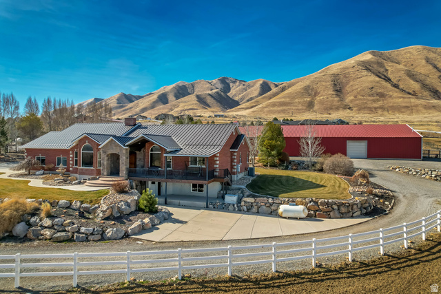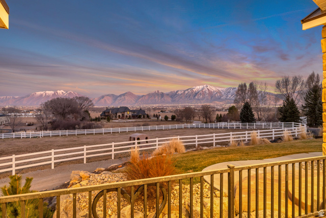 This serene setting has it all. Mountain and valley views. This beautiful home is the perfect blend of a family gathering place and an equestrian dream. The kitchen is spacious with granite counters, double ovens, travertine floors and lots of amazing cabinets and storage. A main floor office space is perfect for running a home business or just staying organized. This property is ideal for multi-generational living or extra income opportunity from the basement full apartment complete with 2 entrances, kitchen, 4 bds, 2 baths and laundry. This home also features a metal roof, 8.5 shares of water, many fruit trees, play ground for the kids, and so much more. The horses will enjoy the pasture grass, and fantastic barn which includes warm water for their baths and hot walker for their exercise (negotiable). There is so much more to share. Contact SuAnne for a fact sheet with additional information, All information is provided as a courtesy. Buyer to verify all information, including, but no limited to, sq. ft., room sizes, lot sizes, etc.