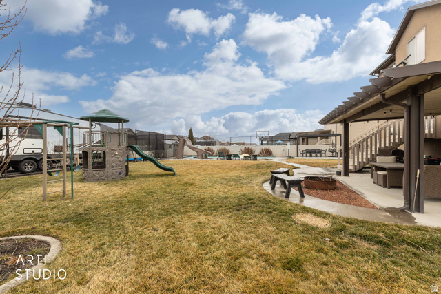 In Person OPEN HOUSE this Saturday 2/14/2026 - 12-2pm Welcome to this spacious corner-lot home in Hooper offering room to live, entertain, and store all your toys. With a thoughtful layout and quality updates throughout, this home blends comfort and function. The main floor features a welcoming kitchen and living area perfect for gathering. Upstairs you'll find 4 bedrooms and 2 full bathrooms, including a grand primary suite with elegant French doors. Updated carpet was installed in 2024 and comes with a warranty for added peace of mind. The fully finished basement (completed in 2015 with city permits) is built for making memories. Enjoy movie nights in the theater room, complete with a kitchenette, projector, and surround sound system, all included. The basement also offers a 5th bedroom and an additional bathroom. Major efficiency upgrades include new attic insulation brought up to an R60 rating and a 95% efficient furnace replaced in 2024. Sellers are also providing a one-year IBEX home warranty. Outside, this property truly shines. The 3-car garage, concrete RV pad with RV power hookup, and included shed provide excellent storage and flexibility. Relax or entertain in multiple outdoor seating areas, including a spacious covered patio with a fire feature. A 40'x16' salt water pool (with transferable Warranty) was installed in 2018 with a high-quality safety cover, creates a backyard retreat, complemented by a pergola for poolside lounging. Square footage figures are provided as a courtesy estimate only and were obtained from County Records. Buyer is advised to obtain an independent measurement.