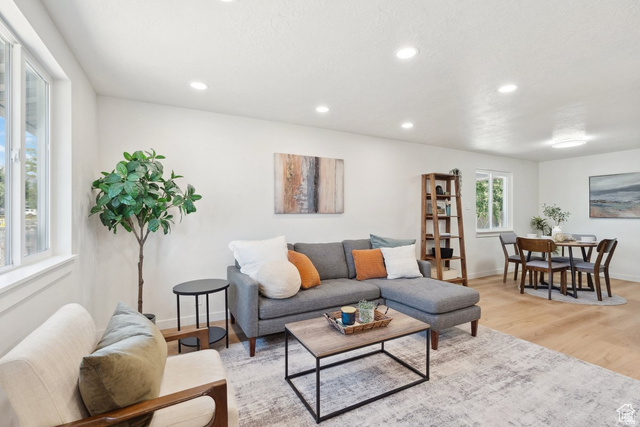 Beautifully remodeled east side Sandy home, updated with modern touch. New flooring, new windows, new bathrooms and more...plenty of parking with oversized 2 car garage and workshop, large backyard for entertainment, sitting on large lot with a view of beautiful mountains. This house has it all. Main level features 3 bedrooms and 1 1/2 baths, living room, semiformal dinning and kitchen with granite counter tops. Basement has 2 additional bedrooms and a big bathroom and laundry and large theater room for entertainment with big screen T.V. Clean ready to move in!
