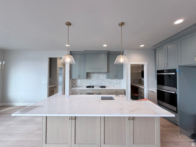 Discover this stunning 3,900 sq ft mountain modern home, perfectly situated on a spacious lot in a tranquil country setting. The exterior boasts a sleek design that seamlessly blends with the natural landscape. Step inside to find an impressive entryway and great room with soaring high ceilings, creating an airy atmosphere. The gourmet kitchen features double ovens, a generous island, and a walk-in pantry, ideal for both everyday living and entertaining. A convenient drop zone adds functionality to your entryway. The unfinished basement offers limitless potential with rough-ins for two bathrooms and a second laundry, plus a walk-out design for easy access to the outdoors. Enjoy abundant storage and a three-car garage, all while taking advantage of the winding walking trails that weave throughout the community. This home perfectly combines modern elegance with serene country living.